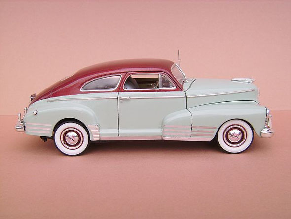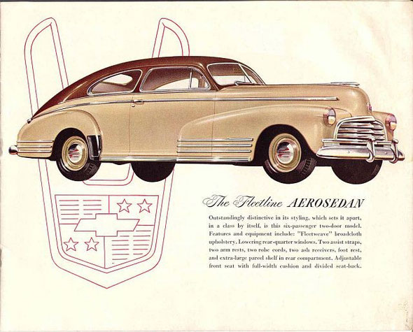Karosserieform auf die Räder stellte, war an Eleganz und Schönheit unerreicht: Eine zweitürige Fastback-Limousine! GM hatte in den ´40ern für ihre Modellpalette neben diversen 4- türigen