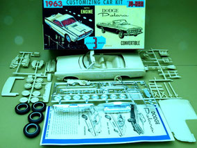 Hier bewahrheitet sich auch die weiter oben bereits geäußerte Vermutung, dass JoHan bei den Wiederauflagen teilweise falsche Teile beigelegt hat: Der Vergleich mit den ebenfalls abgebildeten Annual-Kits des ´62er und ´63er Dodge zeigt, dass die USA Oldies-Ausführung des jahrgangs 1962 das Armaturenbrett des ´63er Dodge Polara-Bausatzes enthält.