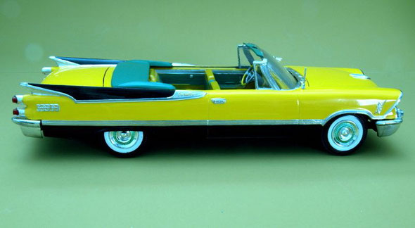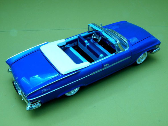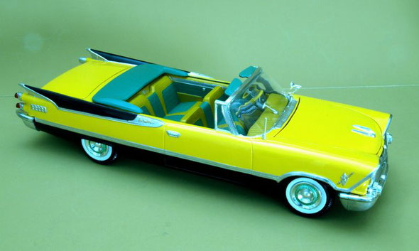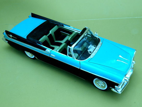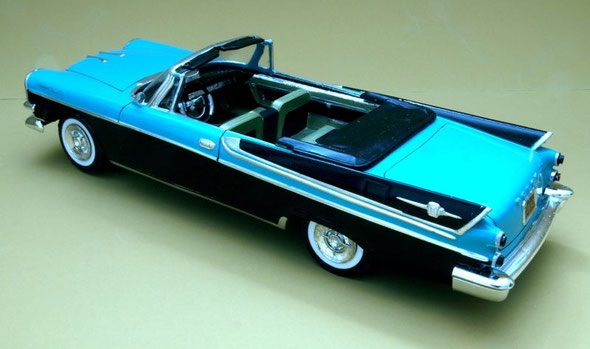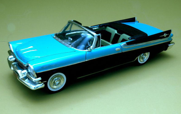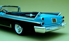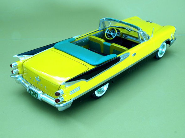 So reifte nach eingehenden Recherchen über die Machbarkeit des Projekts 1958er Dodge Custom Royal Convertible die Überlegung, beide Modelle zu einem zusammenzuführen: Die Karosserie von Memory Lane, die Innenausstattung und der (neu verchromte) Kühlergrill vom ´58er Promo. Ganz genau betrachtet stimmt dieses Modell demnach nicht bis in das letzte Detail, wirkt als Ganzes aber doch stimmig und glaubwürdig.