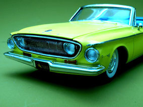 Zwar wurde die Front des ´61er Modells geglättet, dafür drehten die Dodge-Designer erst- und einmalig die Heckflossen um, die nun ihren höchsten Punkt auf Höhe der C-Säule erreichten. Die Einteilung in die „Dart“ und die „Polara“- Serie wurde vom Vorjahr übernommen, zu unterscheiden allerdings nur mehr durch die Heckgestaltung: Beim „Dart“ waren die Rücklichter in einem kleinen Gehäuse direkt über der Stoßstange angeordnet, beim „Polara“ in dem Bogen der Heckflosse. Das „Dart Phoenix Convertible Coupe“ kratzte 1961 bereits an der 3000 Doller Marke: Es kostete 2988 Bucks, für 3294 hätte es bereits ein „Polara Convertible Coupe“ gegeben!