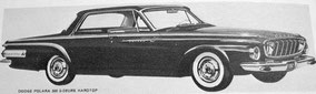 Der „Dart“ bekam für 1963 eine eigenständige, völlig neue Karosserie im „Intermediate“-Format, die „großen“ (tatsächlich wieder gewachsenen!) Dodges behielten die Bezeichnungen „330“, „440“ und „Polara“.bei. Letzteren gab es mit einem Sechs- und zwei Achtzylinder-Motoren; das stärkste Hardtop Coupe mit der Bezeichnung „Polara 500“ wurde 7256 mal gebaut und kostete 2965 Dollar. Die unmittelbare Folge der Neuordnung und des „Restylings“: Eine Steigerung der Fabrikationszahlen auf insgesamt 446.029 Fahrzeuge im Erfolgsjahr 1963!