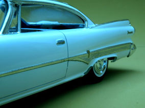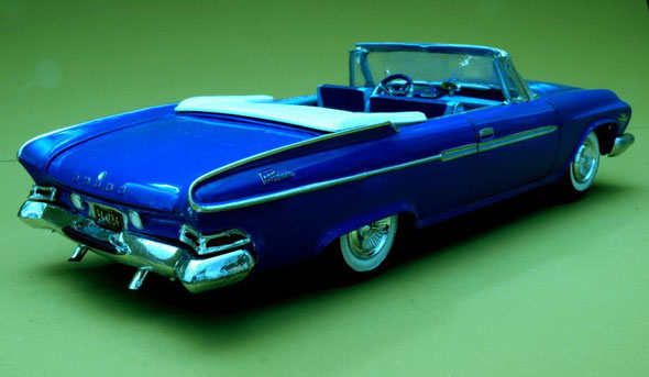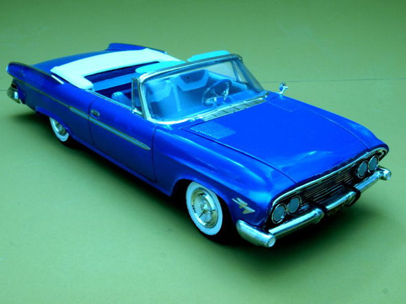 Zur Betonung der ungewöhnlichen Heckflossen-Anordnung dieses Fahrzeugs wurde das Dach abgenommen, womit sich der höchste Punkt der Flossen hinter der C-Säule sichtbar machen ließ. Des Weiteren wurden wie beim ´59er-Modell die Motorhaube und der Kofferraumdeckel ausgeschnitten, um das einfach gehaltene Promo einem Bausatz-Modell anzugleichen.