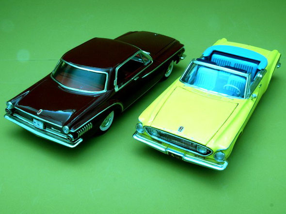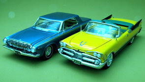 Die beiden hier gezeigten Modelle des 1962er Dodge Dart 440 Hardtop Coupes und Convertibles entstanden aus Bausätzen der USA Oldies-Serie.