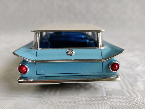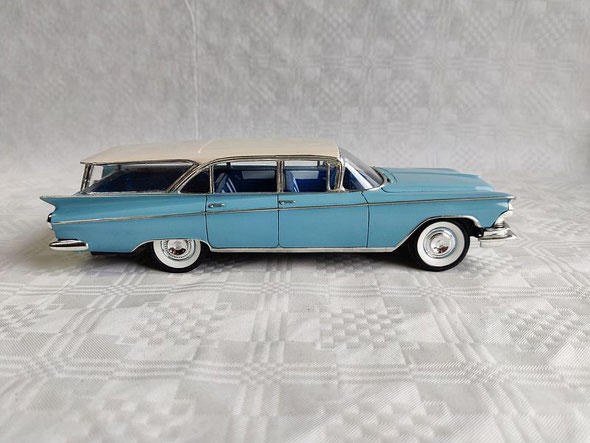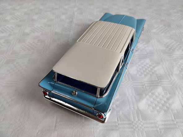 Der Kit ist mal wieder von R&R, damals ein Füllhorn an US-Kombis. Der Bausatz bestand aus der Karosserie, Chrom vorne und hinten, Interieur, Bodengruppe und diesmal passenden Scheiben (!).