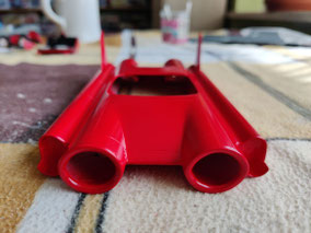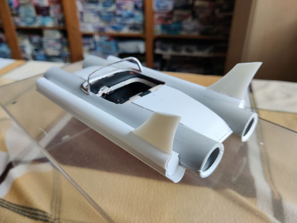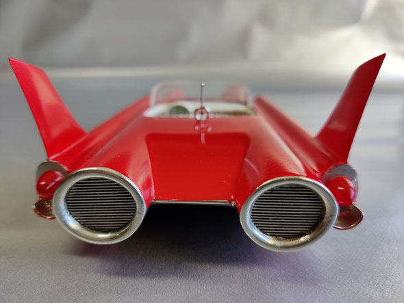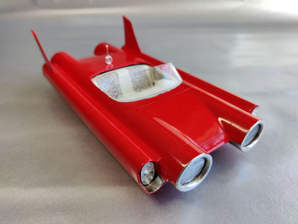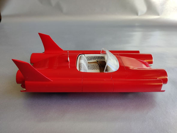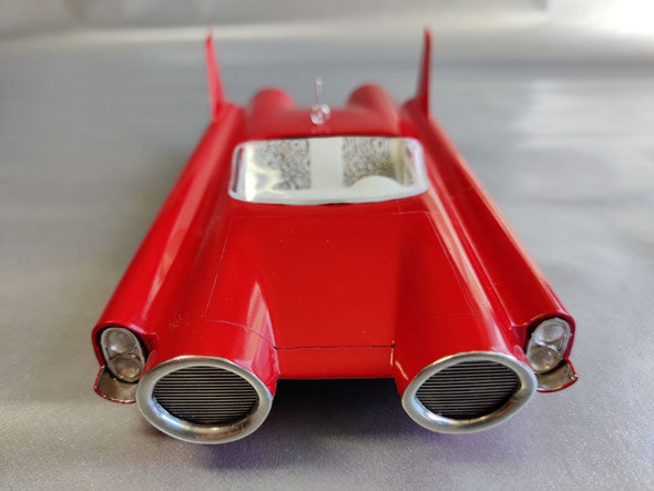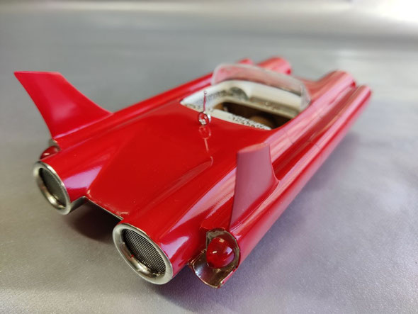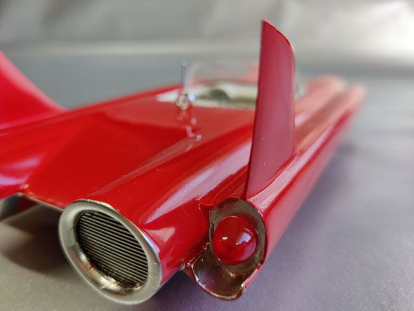 Dann noch die Custom-Heckflossen vom 59 Imperial an ihre Stelle geklebt und fertig war der Rohbau.