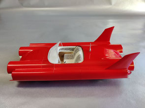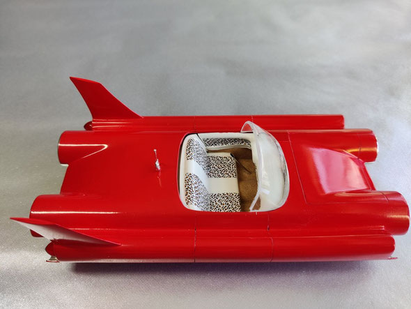 Jetzt haste die nächste Stufe im Modellbau erreicht: selber was zu machen was es nicht zu kaufen gibt. Allein schon die Idee dazu haben und die Vorstellung in die Praxis umzusetzen find ich sensationell! Und dann ist das UFO auch noch mit absoluter Perfektion gebaut, ohne sichtbare Ansetzkanten und Übergänge. Das ist nicht selbstverständlich, verglichen mit manch anderen Exponaten in Modellbauforen oder auf Ausstellungen. Mit dem Ding aus einer anderen Welt oder aus ferner Zukunft erfreust du sicher nicht nur automobile Custom-Bauer, sondern auch eingefleischte Sience-Fiction-Fans (so wie mich). Die Leopardenfell bezogenen Sitze und Innenverkleidungen finde ich auch sehr charmant. Schade, dass kein Bild vom Fahrgestell/Räder gezeigt ist. Sind da vielleicht sogar WW-Reifen verbaut worden? Oder handelt es sich gar um ein Luftkissenfahrzeug?