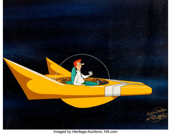 Und dessen Familien-Oberhaupt George Jetson bewegt sich mit einigen ähnlichen Fahr- oder Flugzeugen durch die Serie.