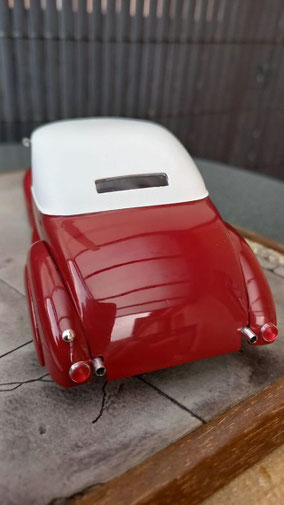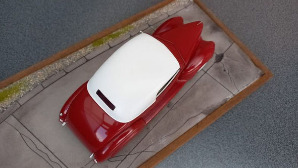 Also Reinhold, per aspera ad astra. Schließlich ist das Auto doch absolut sehenswert geworden. Ein klassischer Custom der frühen 50er. Warum nur stock, mit dem Ergebnis? Vielleicht eher der Anstoß weiter zu machen, vielleicht das, vom wirklich großzügig gespendeten, zweiten Bausatz wohl übrig gebliebene Chassis in einem Period Special zu verwenden? Vielleicht findet sich irgendwo ein passender 3D-Druck oder Resin-„Klumpen“.