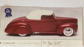 Rettung nahte, als wir heuer im Frühjahr beim Gerhard zu Gast waren und er mir, nachdem ich ihm mein Malheur geschildert hatte, in selbstloser Weise einen kompletten Bausatz vom 40iger AMT Ford Coupe überließ.