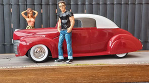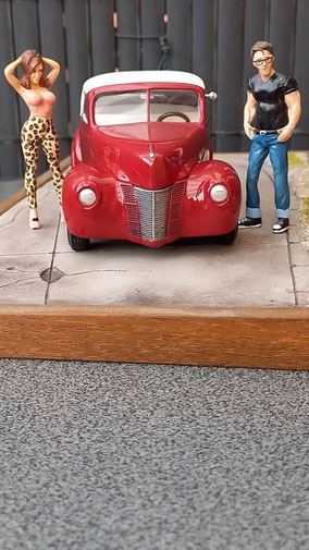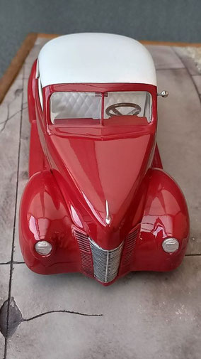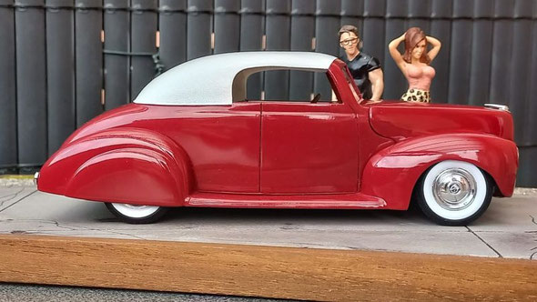 Die Geschichte begann schon im Spätsommer 2024. Eigentlich wollte ich das Revell 40iger Ford Cabrio bauen. Stock, zweifarbig - wobei die Kotflügel eine andere Farbe bekommen sollten. Bei den hinteren wäre es auch kein Problem, da diese separat beiliegen. Aber die vorderen sind an die Karo angegossen und erschweren somit das Abkleben enorm, da durch die Stärke des Abklebebands entweder an der Karo oder an den Kotflügeln immer ein kleiner Rand bleiben würde. Hm. Was nun?